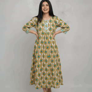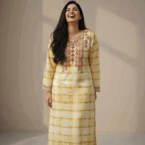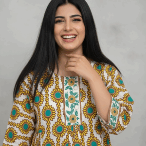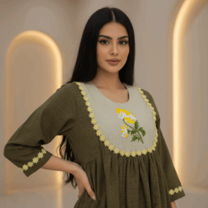 أضف لمسة من الإشراق إلى خزانة ملابسك مع جلابية “زهور الشمس” المبهجة. يجمع هذا التصميم بين الحشمة التقليدية والجمالية النباتية