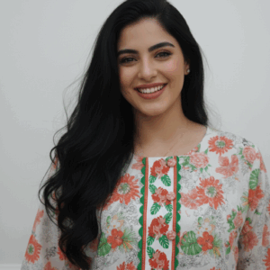 القصة (السيليويت): تصميم أنيق بطول يصل إلى ما تحت الركبة، مع خصر مرتفع (إمباير) وكسرات ناعمة تمنح حركة انسيابية مريحة