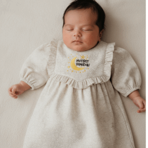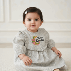 حتفلوا بمحطة مميزة في حياة صغيركم مع ثوب “رمضاني الأول” المصمم خصيصاً للرضع. يأتي هذا الثوب بلون بني “كاكاو” راقٍ