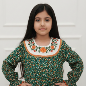 Vintage Floral Embroidered Kids’ Jalabiya – Forest Green