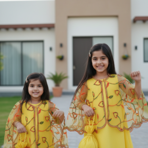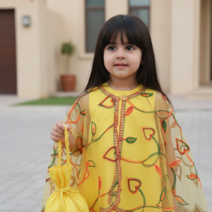 جسدي روح احتفالات منتصف رمضان بهذا الطقم المذهل المكون من قطعتين. صُمم هذا الفستان بلون أصفر مشرق يبعث على البهجة،