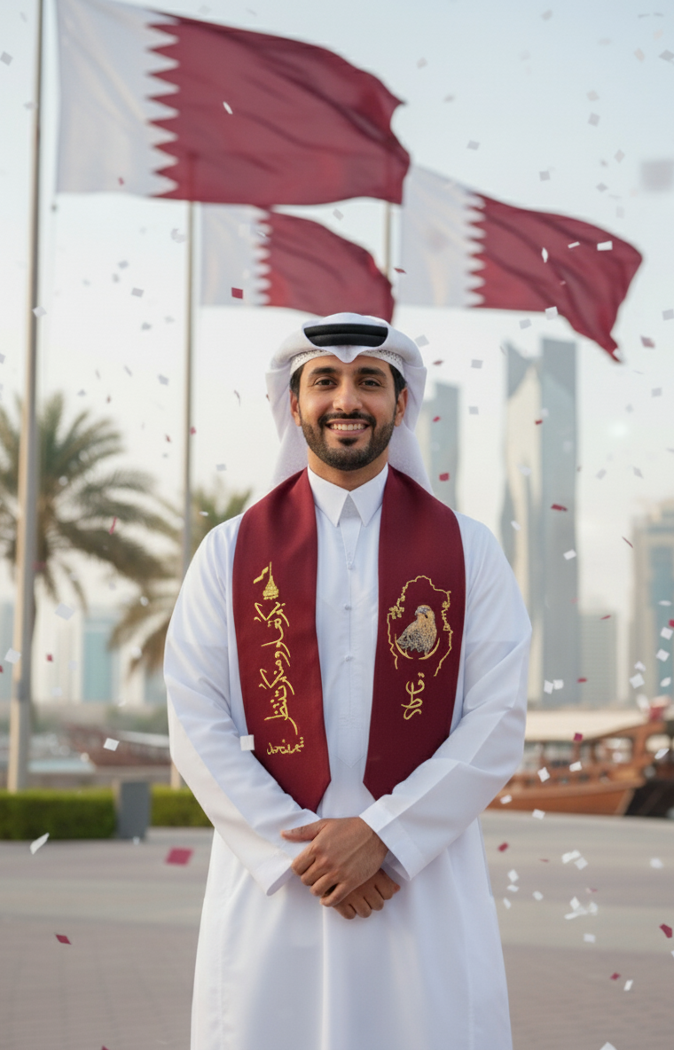 Whether you are participating in National Day celebrations, attending an official ceremony, or simply seeking a sophisticated accessory that pays tribute to Qatar, this crepe shawl is the perfect choice. It combines traditional motifs with modern fabric elegance, ensuring you look distinguished and feel proud.