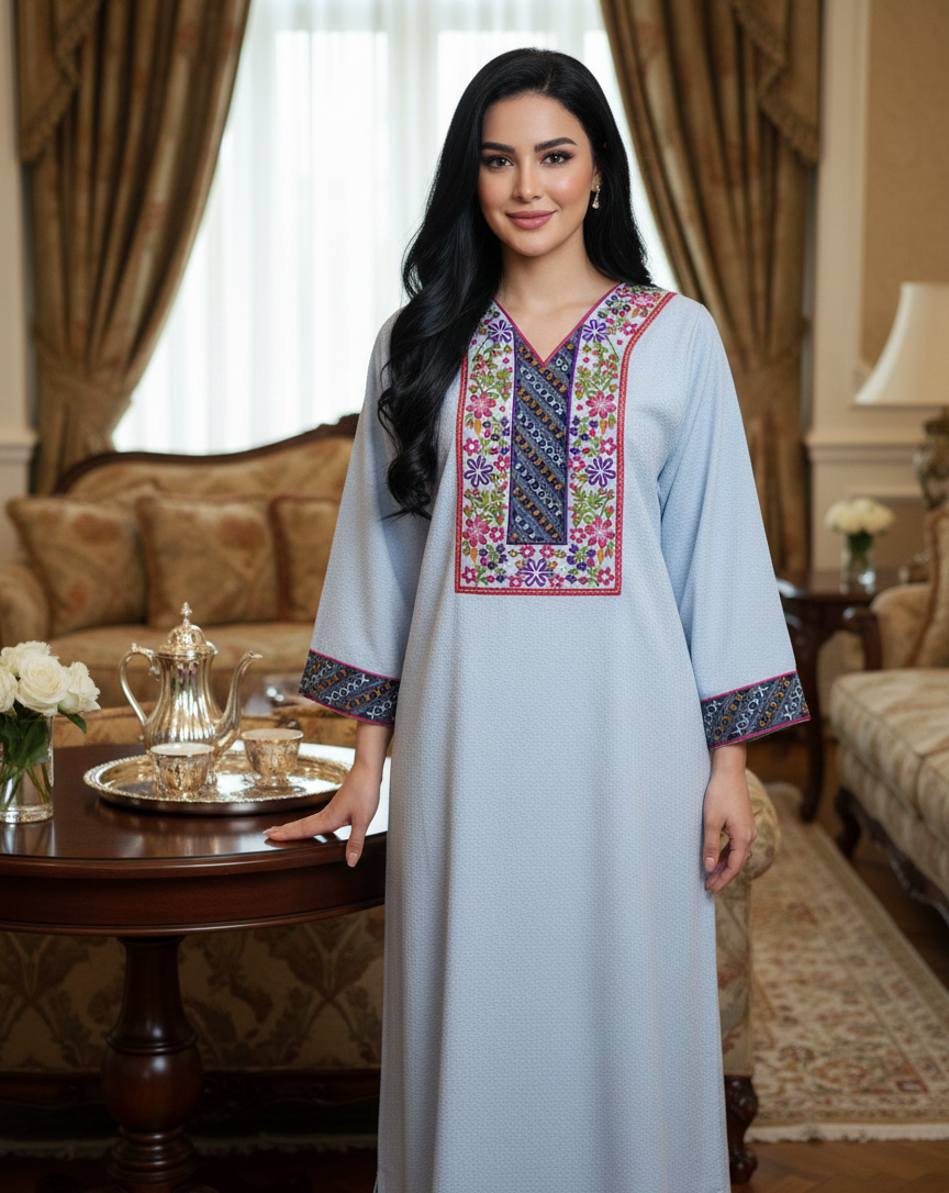 This jalabiya is an excellent choice for a chic, sophisticated look suitable for professional settings, evening gatherings, or any occasion where you want to stand out gracefully.