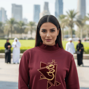 Iconic Ramadan Art: The center panel features whimsical, high-quality embroidery of the crescent moon, a festive Vimto bottle, and traditional treats.