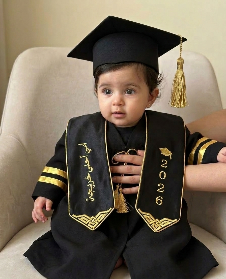 Full Customization: * Name: Personalize the sash or the back of the robe with your child’s name in beautiful Arabic or English calligraphy.