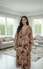 Embrace grounded elegance with our sophisticated Desert Earth Jalabiya. This piece stands out with its bold, abstract print and highly detailed yoke embroidery, perfect for those who appreciate natural tones and traditional craftsmanship.
