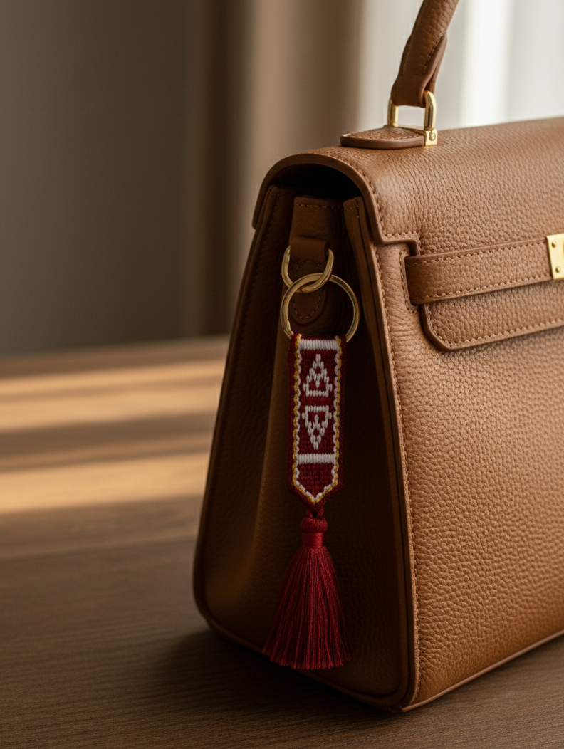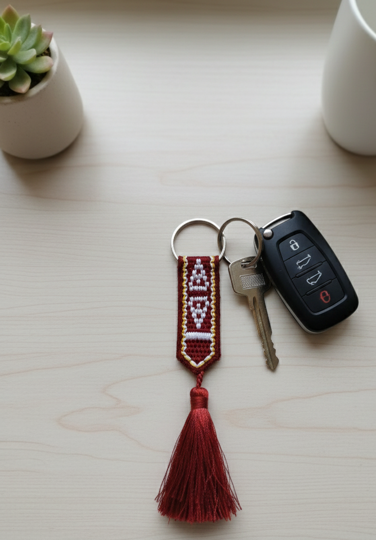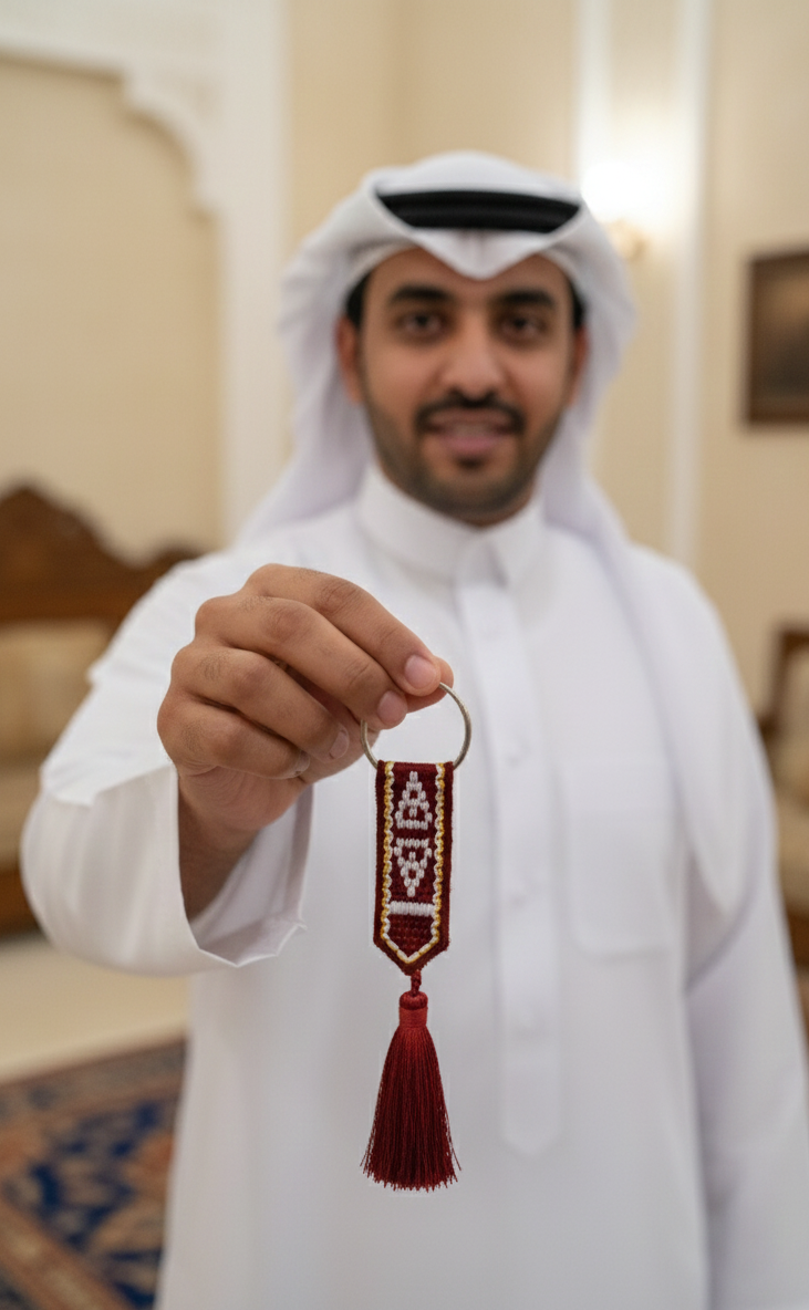 Discover the charm and heritage of Qatar with our exquisitely crafted Sadu-Inspired Tassel Keychain. This piece is more than just an accessory; it’s a portable piece of art that pays homage to the intricate weaving patterns (Sadu) deeply rooted in Qatari culture. Perfect for adding a touch of elegance to your keys, bag, or as a thoughtful, meaningful gift.