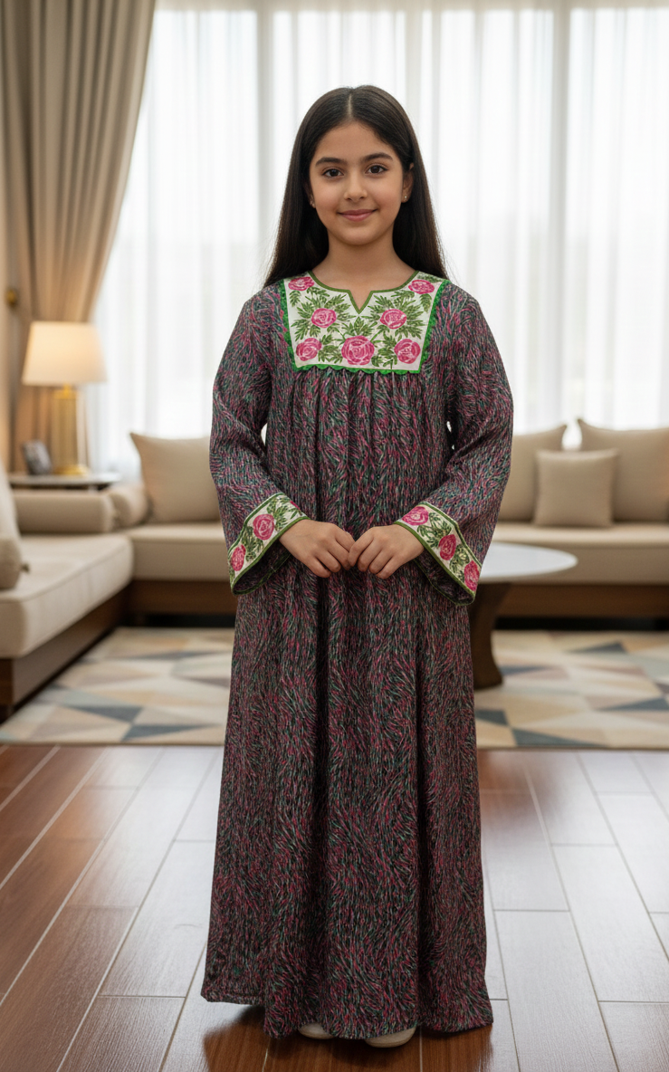 Introduce a burst of color to your wardrobe with our Vibrant Meadow Jalabiya. This eye-catching piece perfectly balances a bold,