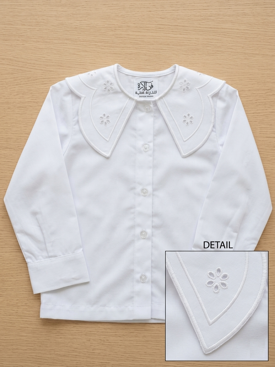 Intricate Embroidery: Each collar point is adorned with delicate floral eyelet embroidery, offering a subtle, tactile detail that catches the eye.