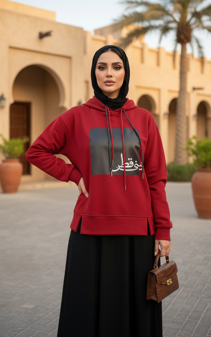 Celebrate your love for Qatar with this stylish National Day T-shirt, featuring a maroon patch logo of the Qatar map