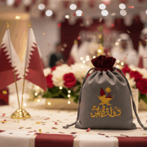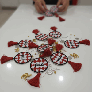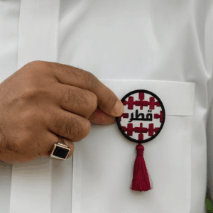 احتفل باليوم الوطني القطري بأناقة مع هذه القبعات الراقية المزينة بتصميم تطريز على شكل رقعة. تتميز القبعة بشعار جميل مطرّز