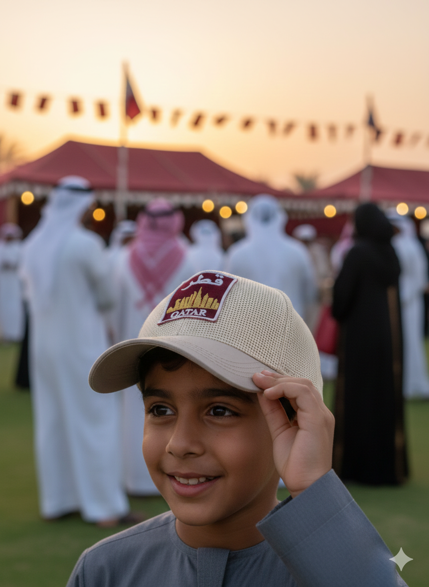 احتفل باليوم الوطني القطري بأناقة مع هذه القبعات الراقية المزينة بتصميم تطريز على شكل رقعة. تتميز القبعة بشعار جميل مطرّز باللونين المارون والذهبي يجسّد أفق قطر وكلمة “QATAR” مكتوبة بالعربية والإنجليزية.