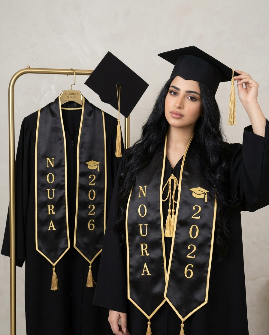 لمسة شخصية: تطريز خاص يشتمل على الاسم وسنة التخرج.