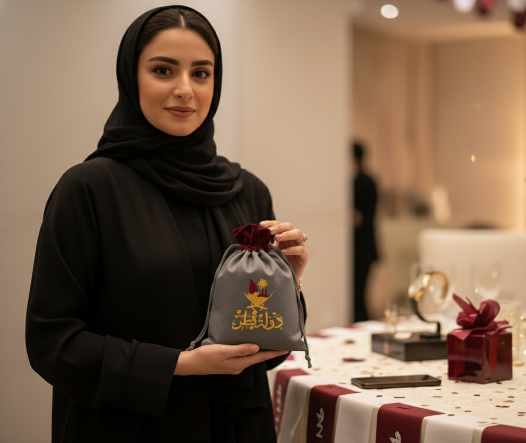 الهدية الأسهل والأفضل لأي شخص على قائمتك! سواء كانت لزميل، صديق، أو أحد أفراد العائلة الزائرين لقطر، فإن هذه الحقيبة بسحب الخيط تجمع بين الأناقة والعملية وتحمل طابعًا محليًا مميزًا. مثالية لأعياد الميلاد، الفعاليات الشركات، أو كتذكار راقٍ.