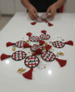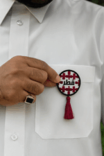 مصنوعة بتطريز عالي الجودة ومزوّدة بشرابة مارونية فاخرة، يجمع هذا الإكسسوار بين الأصالة الثقافية والجاذبية العصرية الأنيقة. خفيفة وسهلة التثبيت، وتناسب تمامًا جيوب الثوب، القمصان، الحقائب، أو الزي الرسمي.