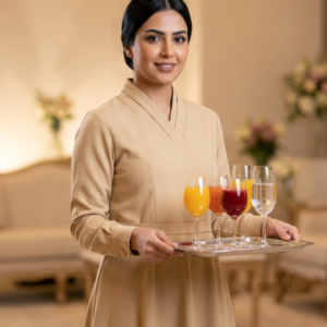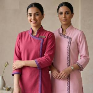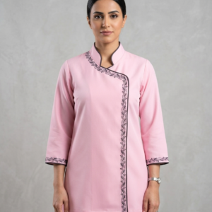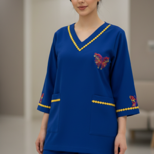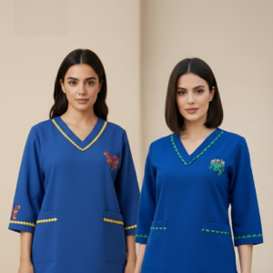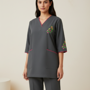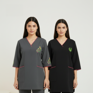 • طقم يونيفورم كامل: يتضمن الطقم بلوزة بنمط “تونيك” مع بنطال مطابق للحصول على مظهر مهني متكامل ومتناسق.