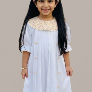 نقدم لكِ فستان الكتان الأبيض المخصص، خيار كلاسيكي وساحر لصغيرتك. صُنع هذا الفستان الأنيق من كتان عالي الجودة ليوفر تهوية مثالية وراحة فائقة. يُعد الفستان قطعة مثالية لكل المناسبات الخاصة، حيث يتميز بتطريز لافت باللون الأرجواني، مع إمكانية إضافة اسم طفلتكِ، مما يجعله تذكاراً فريداً لا يُنسى.