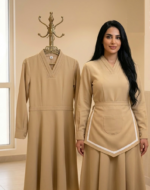 خصر محدد ينسدل بنعومة ليتحول إلى تنورة واسعة (A-line) تمنحكِ سهولة وحرية في الحركة.