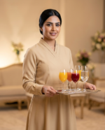 Premium Floral-Embroidered Service Uniform – Camel & Cream