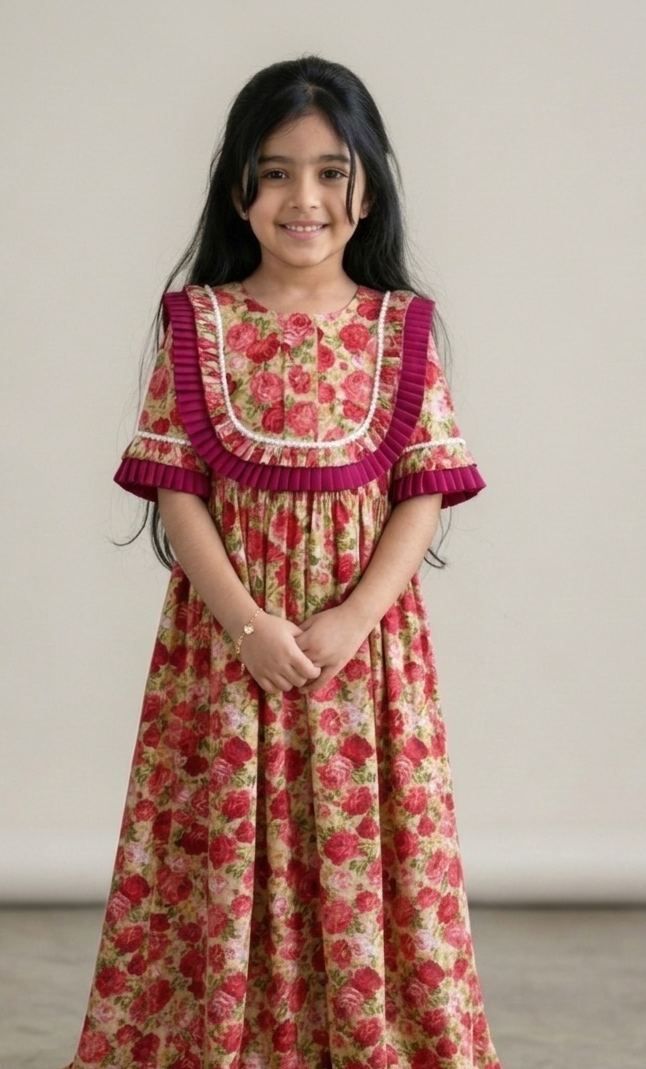 أحضِروا جمال الحديقة المزهرة إلى خزانة ملابسها مع فستان “حديقة الورد الإنجليزي” الساحر هذا. هذا الفستان مثالي للمناسبات الخاصة أو